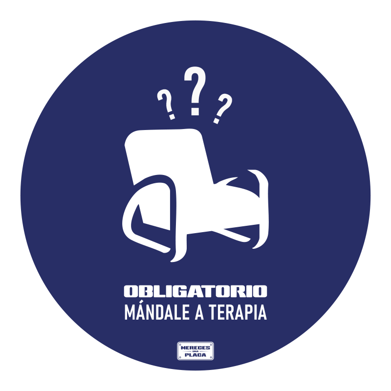 Placa circular diseño “Mándale a terapia” de 25×25 o 35×35 cm fabricada con materiales como aluminio, forex o lona plástica (a elegir entre esas 3 opciones). El diseño se imprime mediante tecnología de alta precisión, asegurando colores nítidos y duraderos.