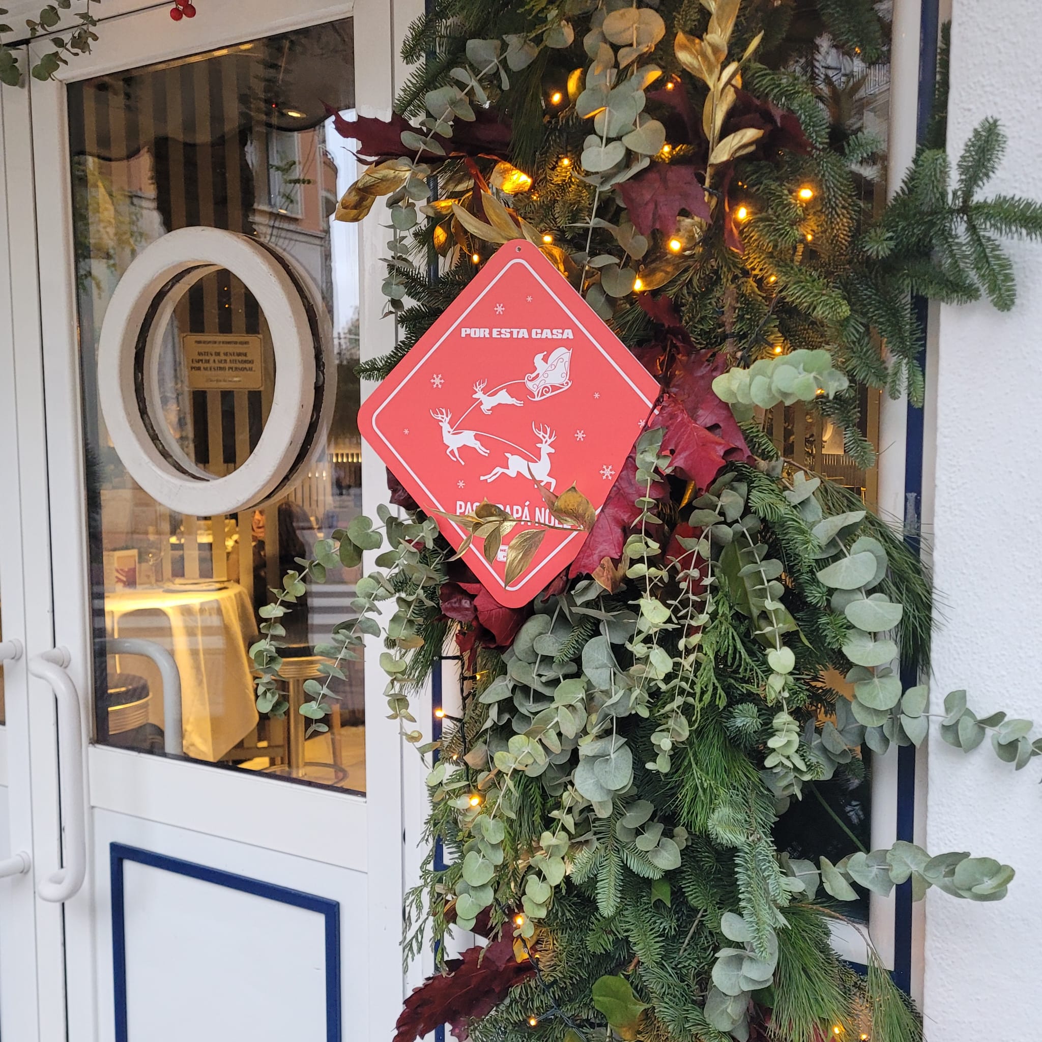 Placa rombo diseño “Por esta casa pasa Papá Noel” de 25×25 o 35×35 cm fabricada con materiales como aluminio, forex o lona plástica (a elegir entre esas 3 opciones). El diseño se imprime mediante tecnología de alta precisión, asegurando colores nítidos y duraderos.